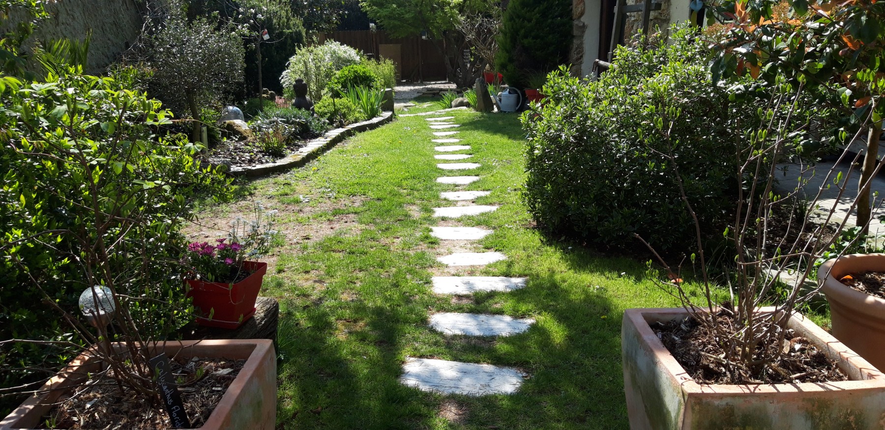 41m² donnant sur la cour et accès direct au jardin, composé d’une chambre (lit 160×200) ouverte sur sdb séparée par des paroies Japonaises (sans fenêtre), WC séparé, salon avec canapé pour un couchage 1 personne, cuisine équipée avec lave linge et lave vaisselle, wc séparé. TV écran plat et wifi gratuit.